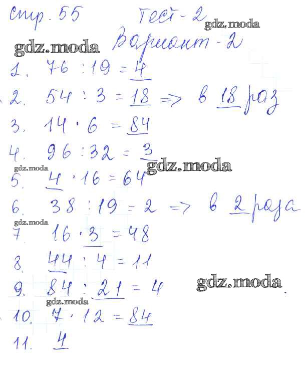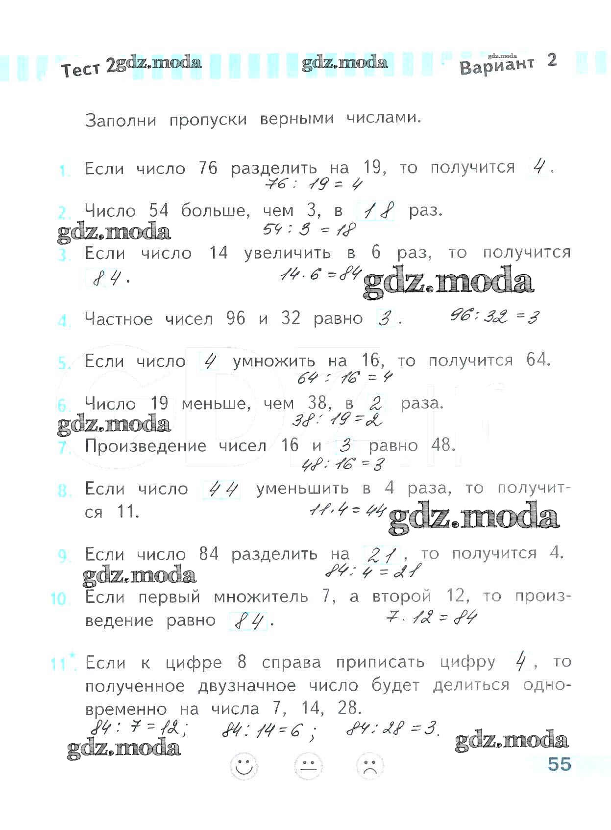 ОТВЕТ на задание № 55 Проверочные работы по Математике 3 класс Волкова Школа России