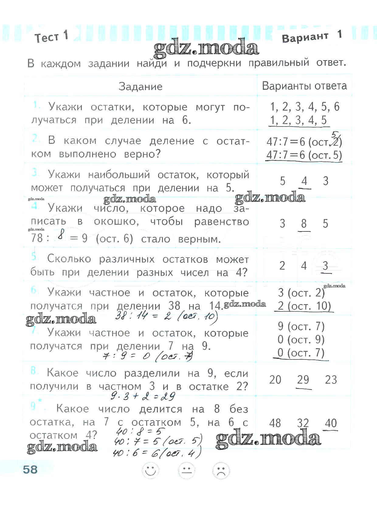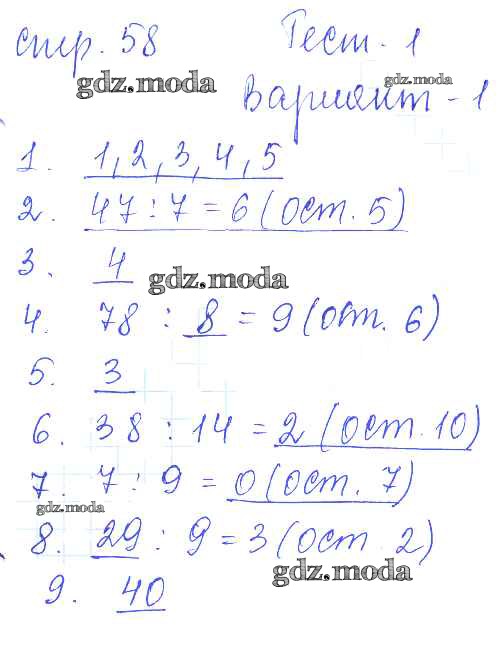 ОТВЕТ на задание № 58 Проверочные работы по Математике 3 класс Волкова Школа России