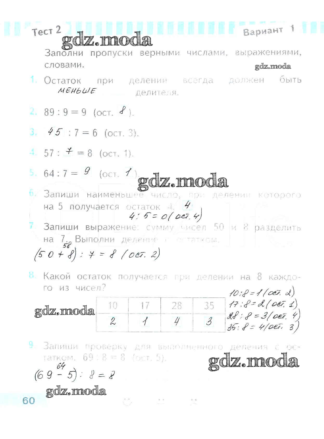 ОТВЕТ на задание № 60 Проверочные работы по Математике 3 класс Волкова Школа России