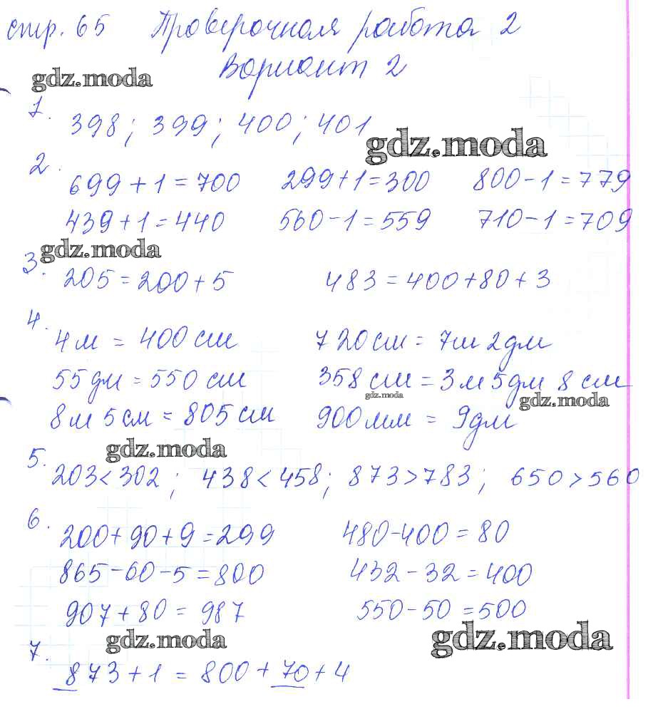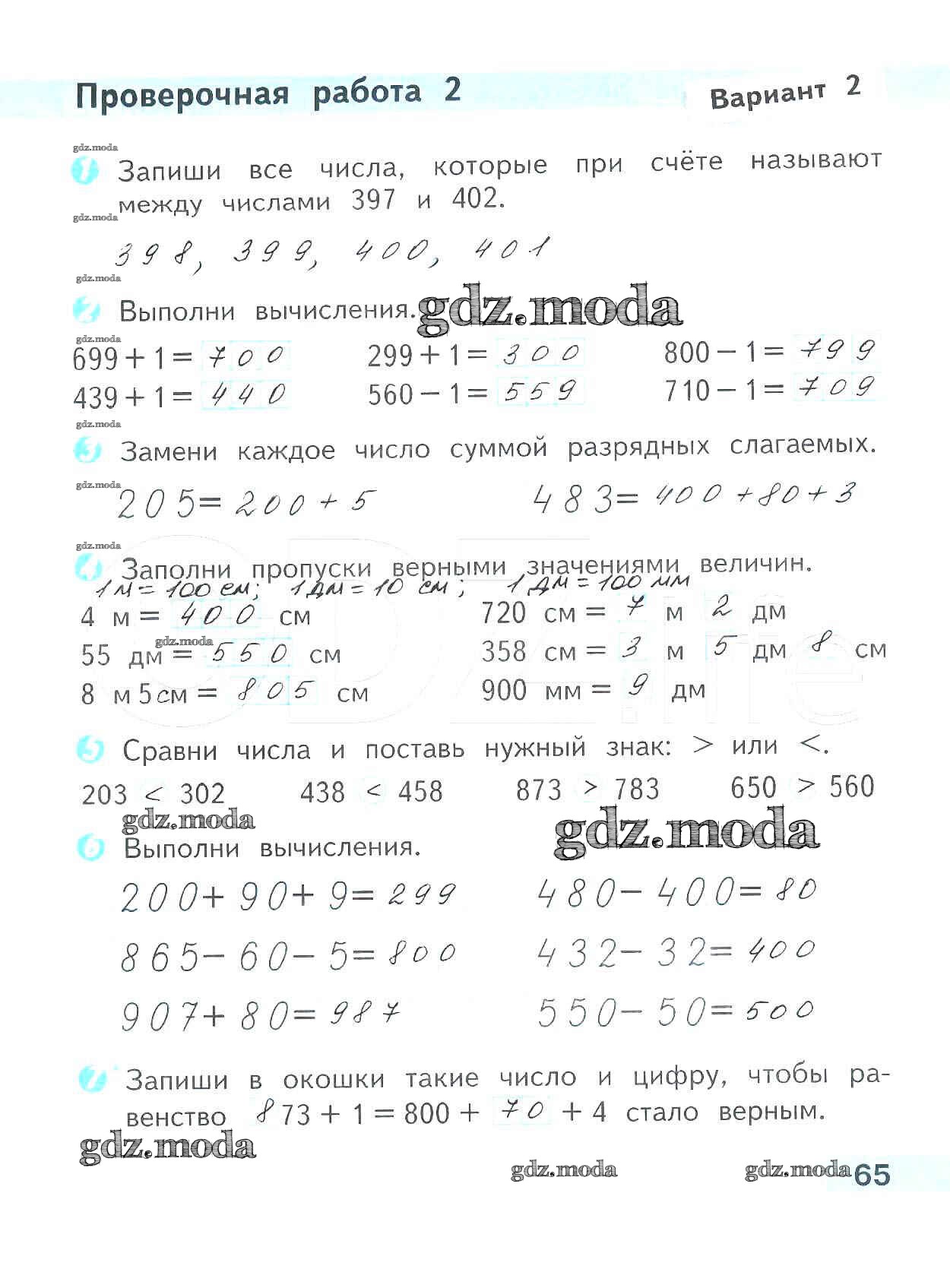 ОТВЕТ на задание № 65 Проверочные работы по Математике 3 класс Волкова Школа России