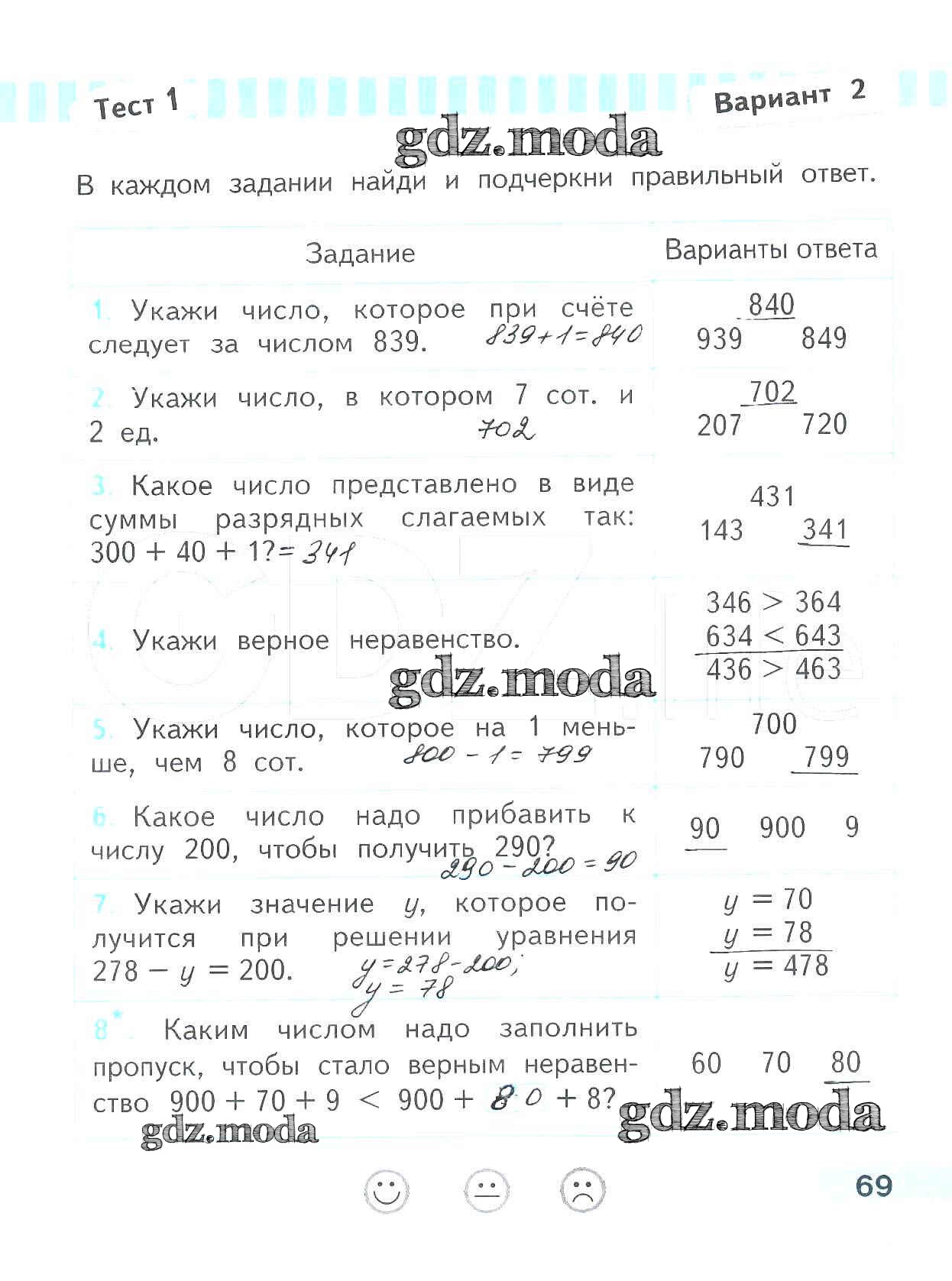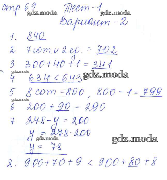 ОТВЕТ на задание № 69 Проверочные работы по Математике 3 класс Волкова Школа России