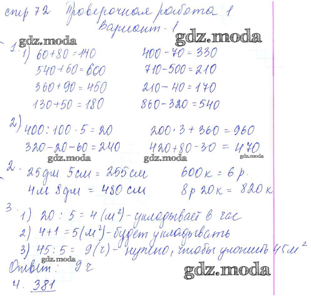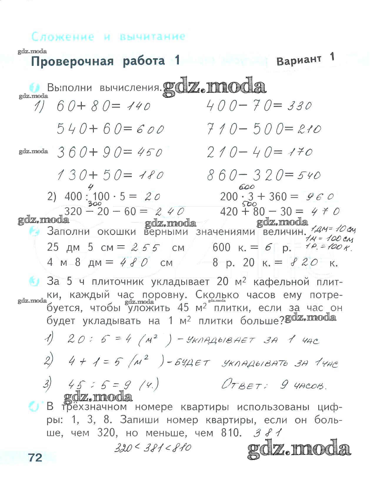ОТВЕТ на задание № 72 Проверочные работы по Математике 3 класс Волкова Школа России