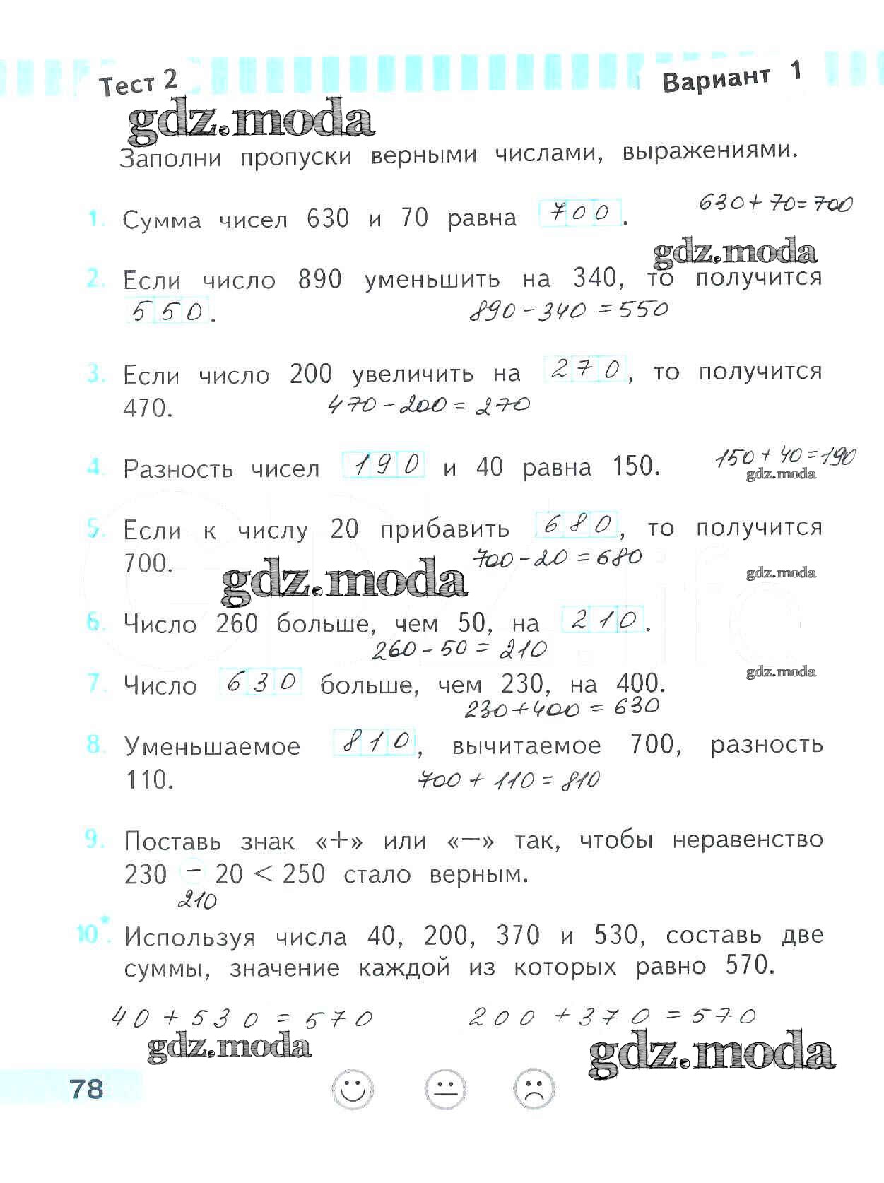 ОТВЕТ на задание № 78 Проверочные работы по Математике 3 класс Волкова Школа России