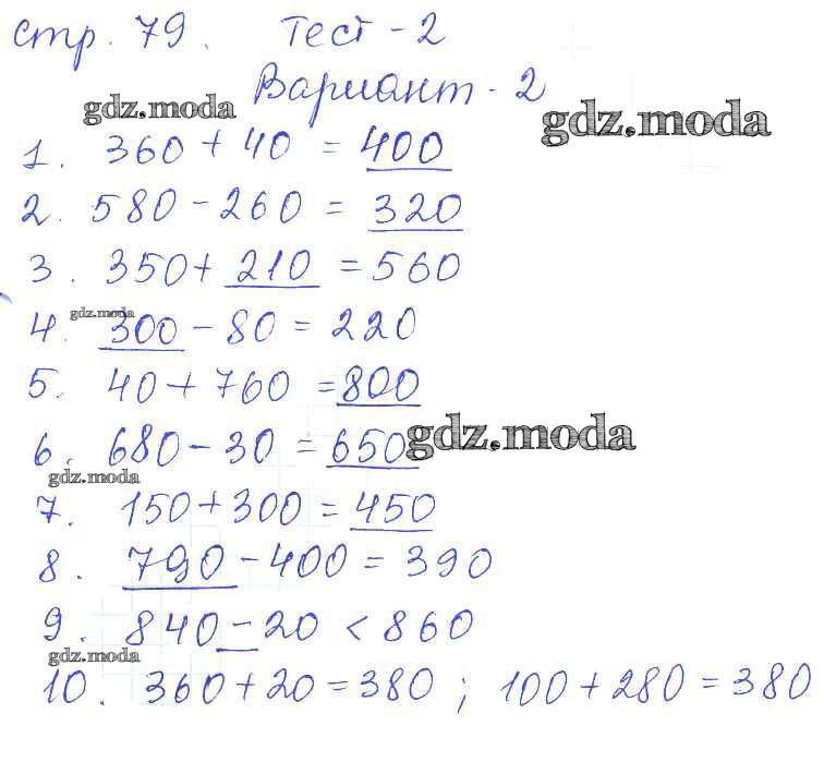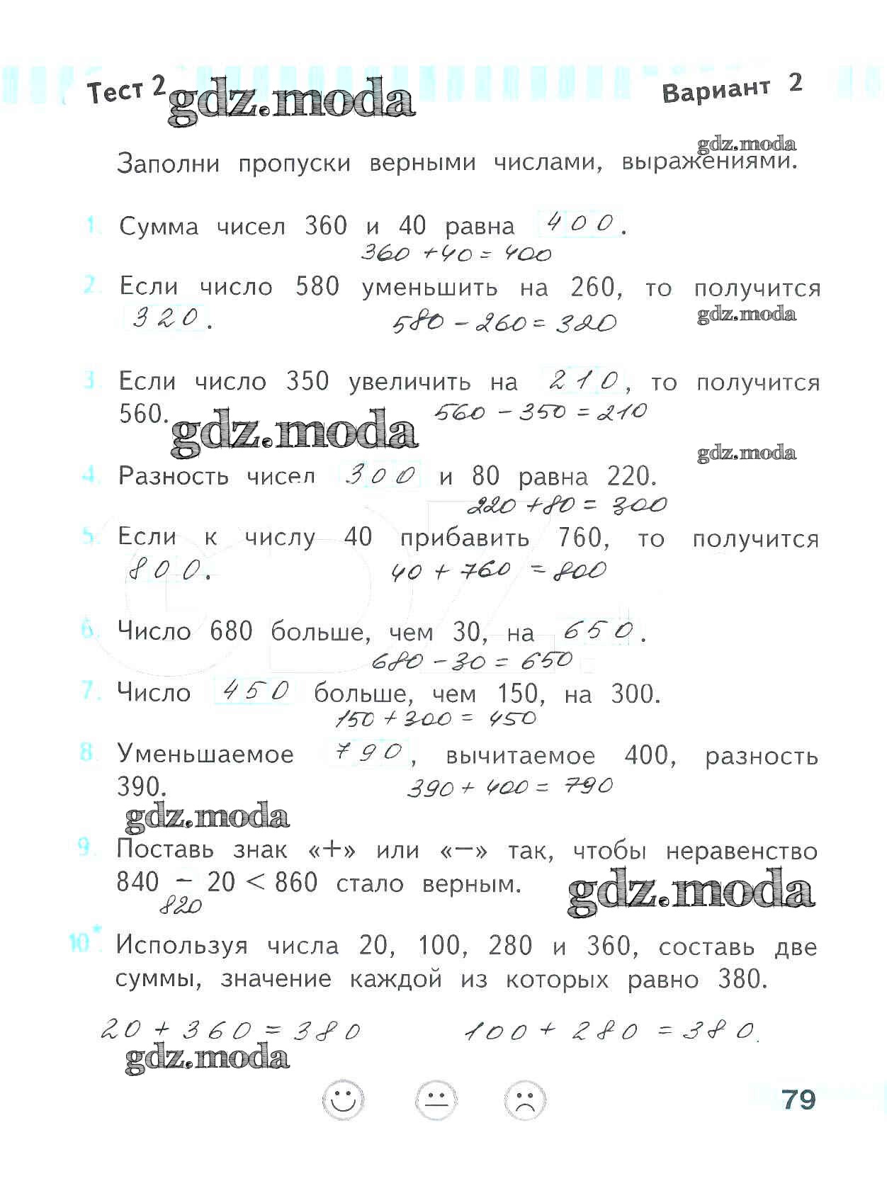 ОТВЕТ на задание № 79 Проверочные работы по Математике 3 класс Волкова Школа России
