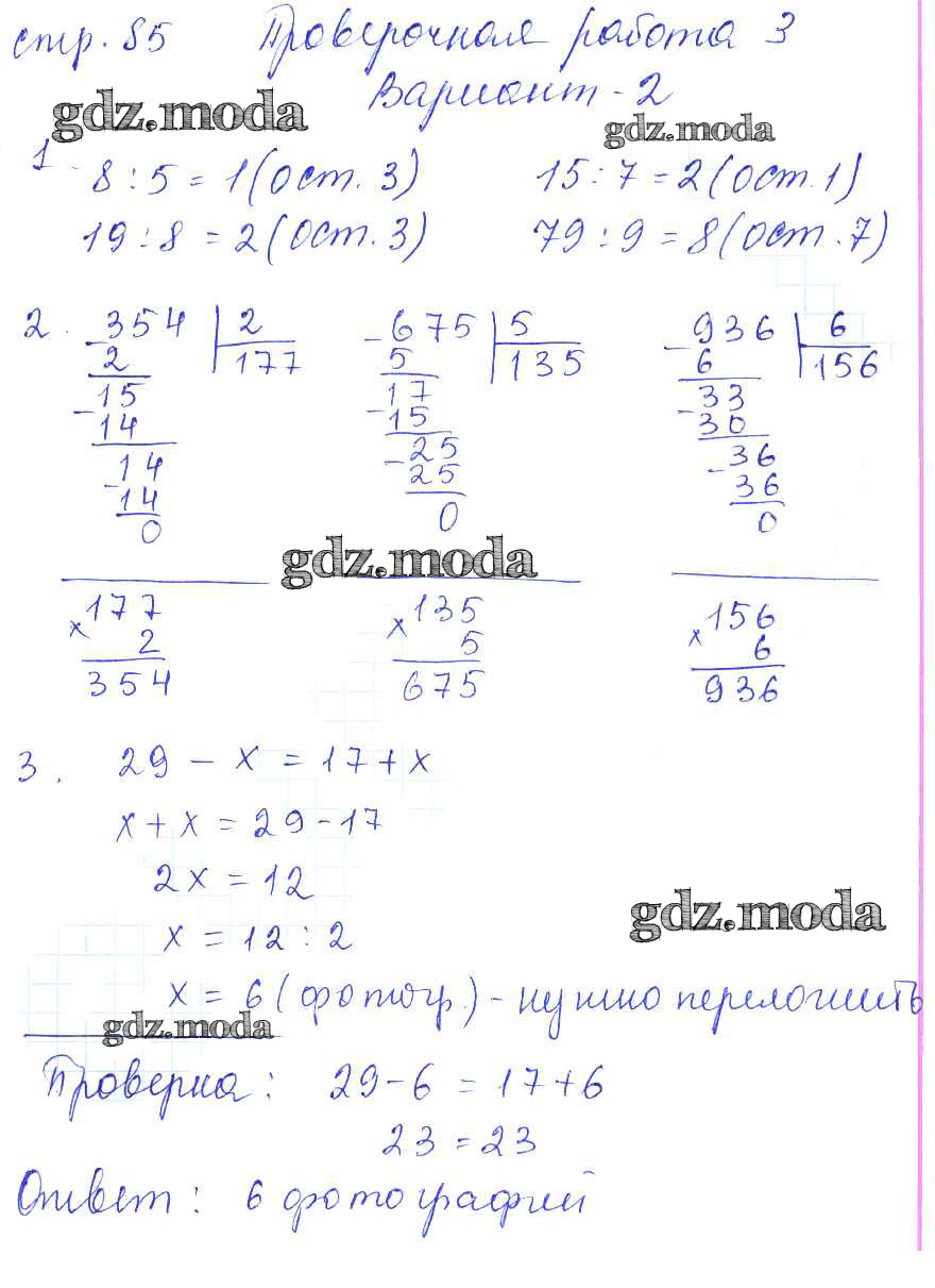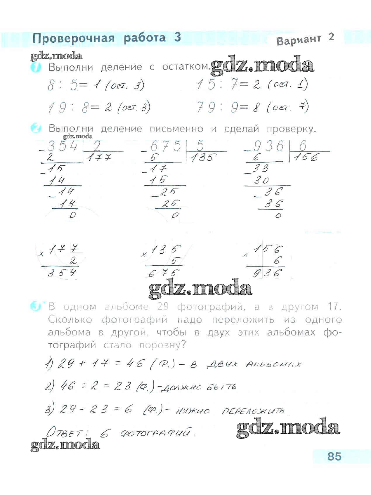 ОТВЕТ на задание № 85 Проверочные работы по Математике 3 класс Волкова Школа России
