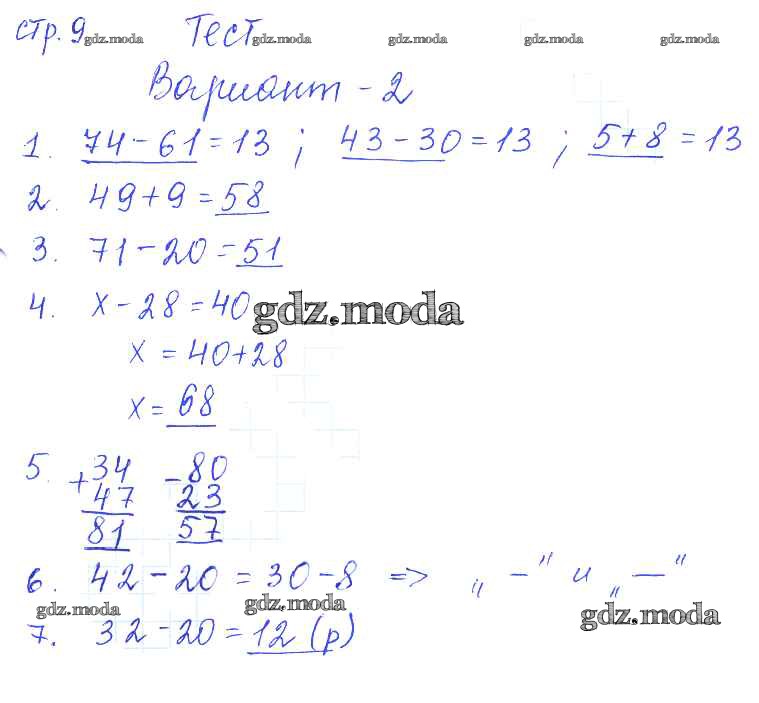 ОТВЕТ на задание № 9 Проверочные работы по Математике 3 класс Волкова Школа России