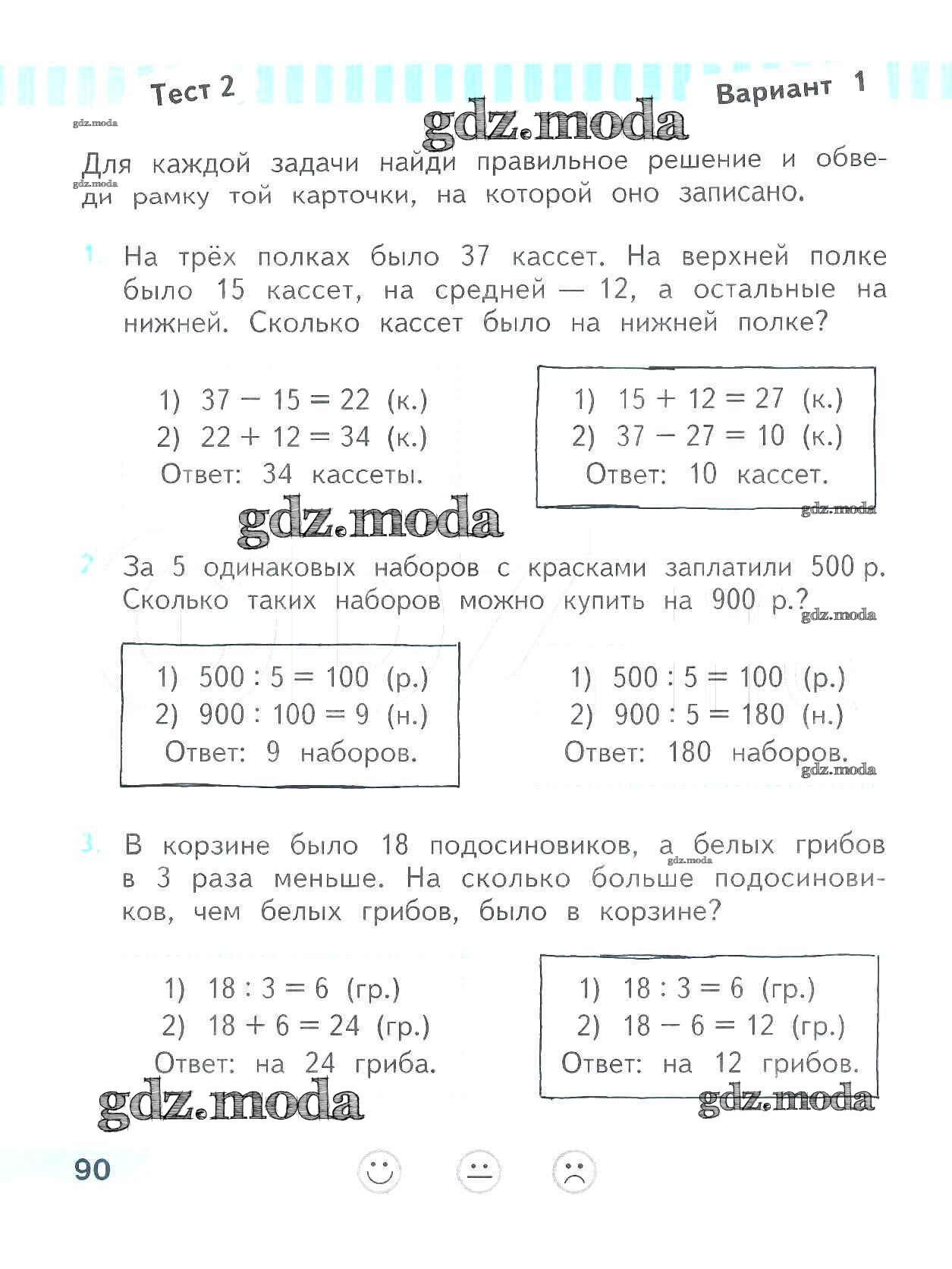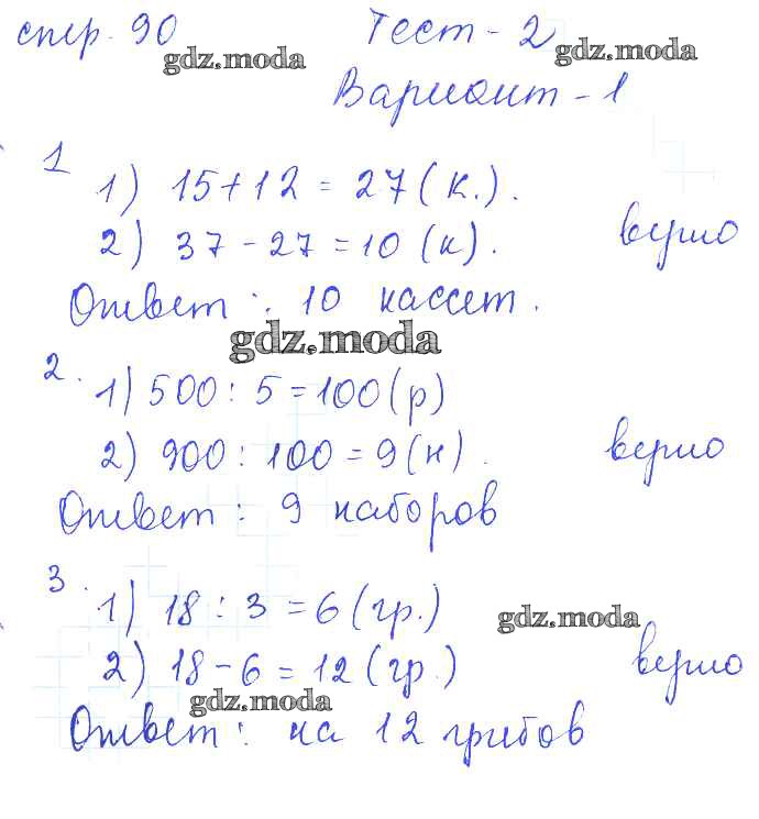 ОТВЕТ на задание № 90 Проверочные работы по Математике 3 класс Волкова Школа России