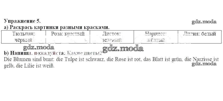 ГДЗ решение к заданию № 5 Немецкий язык 3 класс рабочая тетрадь Бим И.Л. Просвещение 2018 ФГОС бесплатно на гдз.мода!