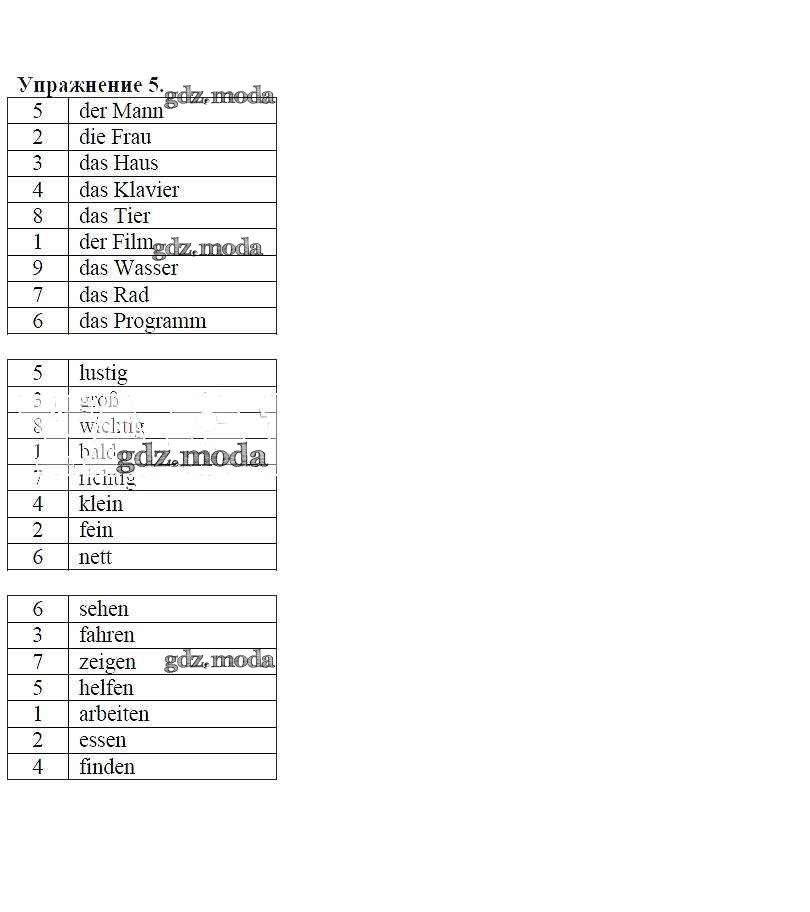 ГДЗ решение к заданию № 5 Немецкий язык 3 класс рабочая тетрадь Бим И.Л. Просвещение 2018 ФГОС бесплатно на гдз.мода!