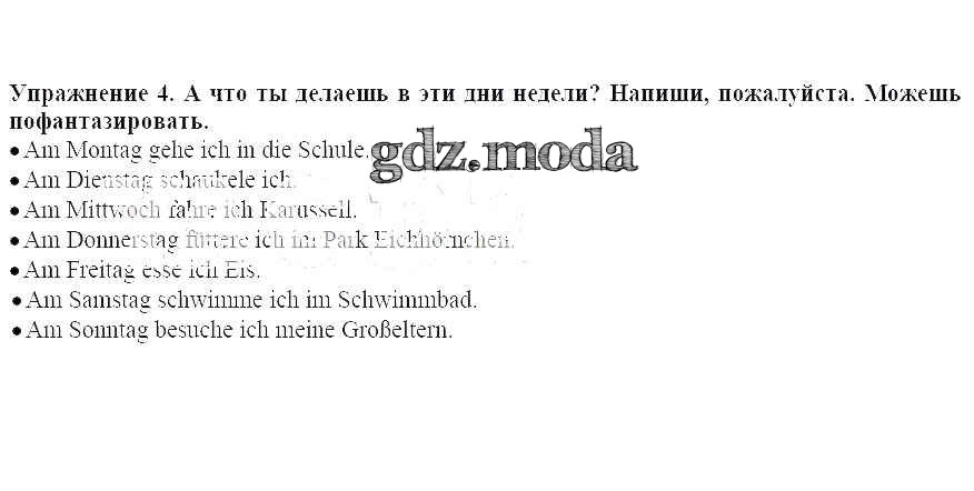 ГДЗ решение к заданию № 4 Немецкий язык 3 класс рабочая тетрадь Бим И.Л. Просвещение 2018 ФГОС бесплатно на гдз.мода!