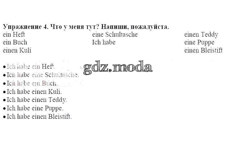 ГДЗ решение к заданию № 4 Немецкий язык 3 класс рабочая тетрадь Бим И.Л. Просвещение 2018 ФГОС бесплатно на гдз.мода!