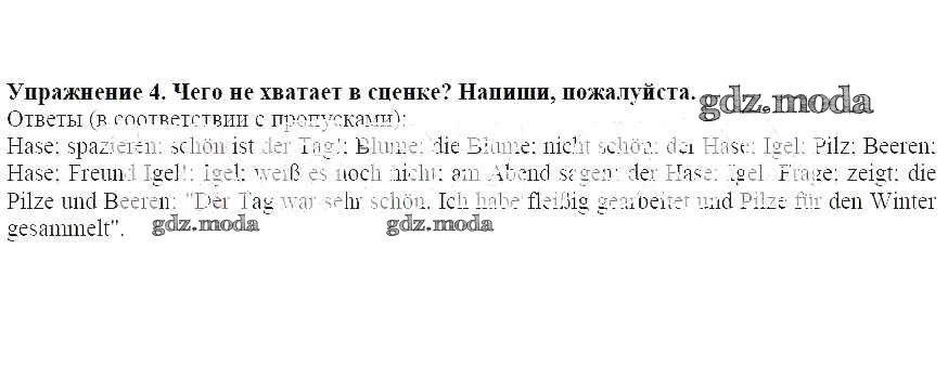ГДЗ решение к заданию № 4 Немецкий язык 3 класс рабочая тетрадь Бим И.Л. Просвещение 2018 ФГОС бесплатно на гдз.мода!