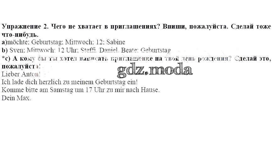 ГДЗ решение к заданию № 2 Немецкий язык 3 класс рабочая тетрадь Бим И.Л. Просвещение 2018 ФГОС бесплатно на гдз.мода!