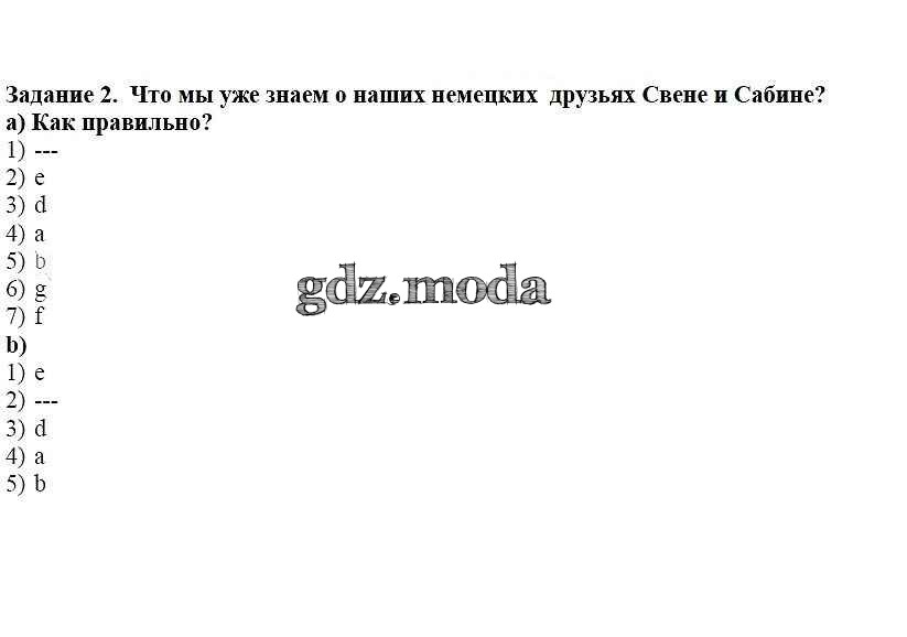 ГДЗ решение к заданию № 2 Немецкий язык 3 класс Бим И.Л. Просвещение 2014 Часть 1, Часть 2 ФГОС бесплатно на гдз.мода!