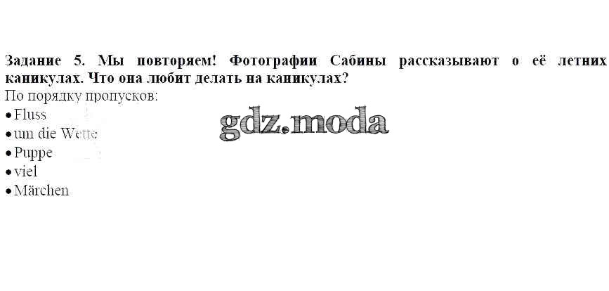 ГДЗ решение к заданию № 5 Немецкий язык 3 класс Бим И.Л. Просвещение 2014 Часть 1, Часть 2 ФГОС бесплатно на гдз.мода!