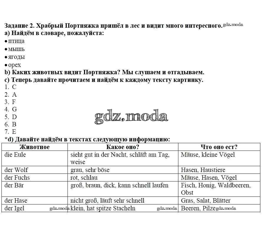 ГДЗ решение к заданию № 2 Немецкий язык 3 класс Бим И.Л. Просвещение 2014 Часть 1, Часть 2 ФГОС бесплатно на гдз.мода!