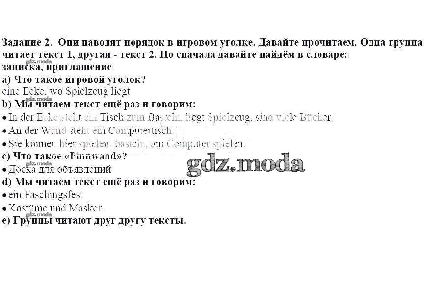 ГДЗ решение к заданию № 2 Немецкий язык 3 класс Бим И.Л. Просвещение 2014 Часть 1, Часть 2 ФГОС бесплатно на гдз.мода!