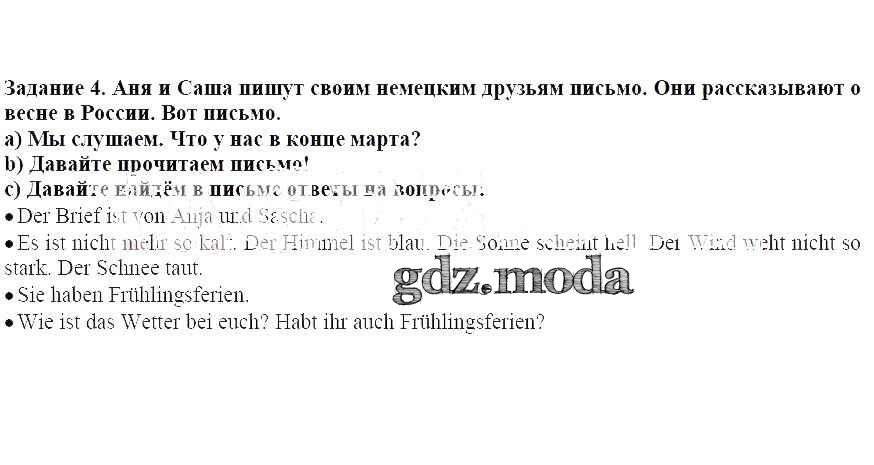 ГДЗ решение к заданию № 4 Немецкий язык 3 класс Бим И.Л. Просвещение 2014 Часть 1, Часть 2 ФГОС бесплатно на гдз.мода!
