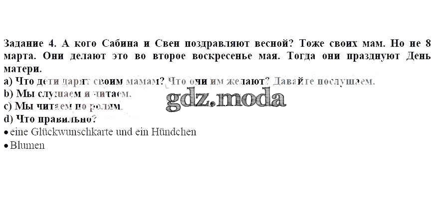 ГДЗ решение к заданию № 4 Немецкий язык 3 класс Бим И.Л. Просвещение 2014 Часть 1, Часть 2 ФГОС бесплатно на гдз.мода!