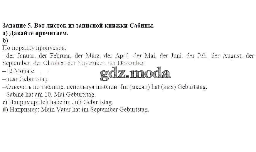 ГДЗ решение к заданию № 5 Немецкий язык 3 класс Бим И.Л. Просвещение 2014 Часть 1, Часть 2 ФГОС бесплатно на гдз.мода!