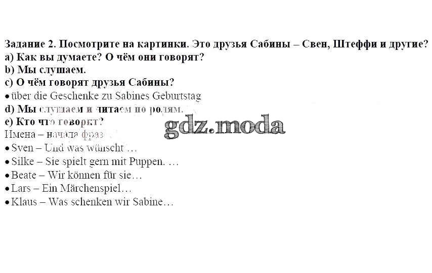 ГДЗ решение к заданию № 2 Немецкий язык 3 класс Бим И.Л. Просвещение 2014 Часть 1, Часть 2 ФГОС бесплатно на гдз.мода!