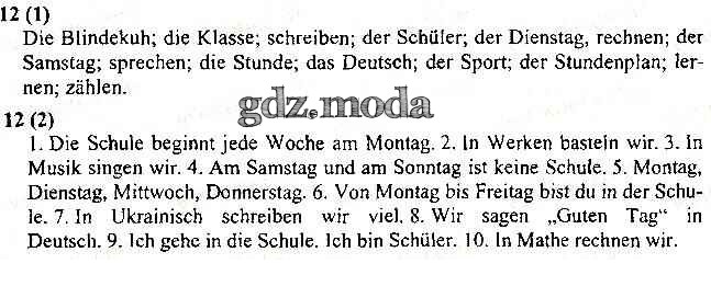 ГДЗ решение к заданию № 12 Немецкий язык 3 класс рабочая тетрадь Грицюк Пiдручники и посiбники 2014 бесплатно на гдз.мода!