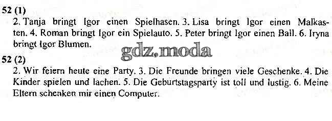 ГДЗ решение к заданию № 52 Немецкий язык 3 класс рабочая тетрадь Грицюк Пiдручники и посiбники 2014 бесплатно на гдз.мода!