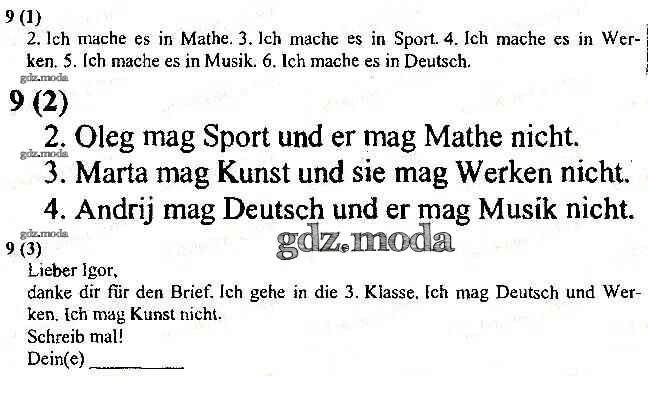 ГДЗ решение к заданию № 9 Немецкий язык 3 класс рабочая тетрадь Грицюк Пiдручники и посiбники 2014 бесплатно на гдз.мода!