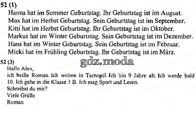 ГДЗ решение к заданию № 52 Немецкий язык 3 класс рабочая тетрадь Паршикова Грамота 2013 бесплатно на гдз.мода!