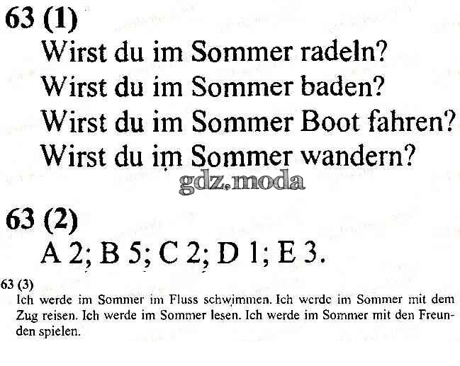 ГДЗ решение к заданию № 63 Немецкий язык 3 класс рабочая тетрадь Паршикова Грамота 2013 бесплатно на гдз.мода!