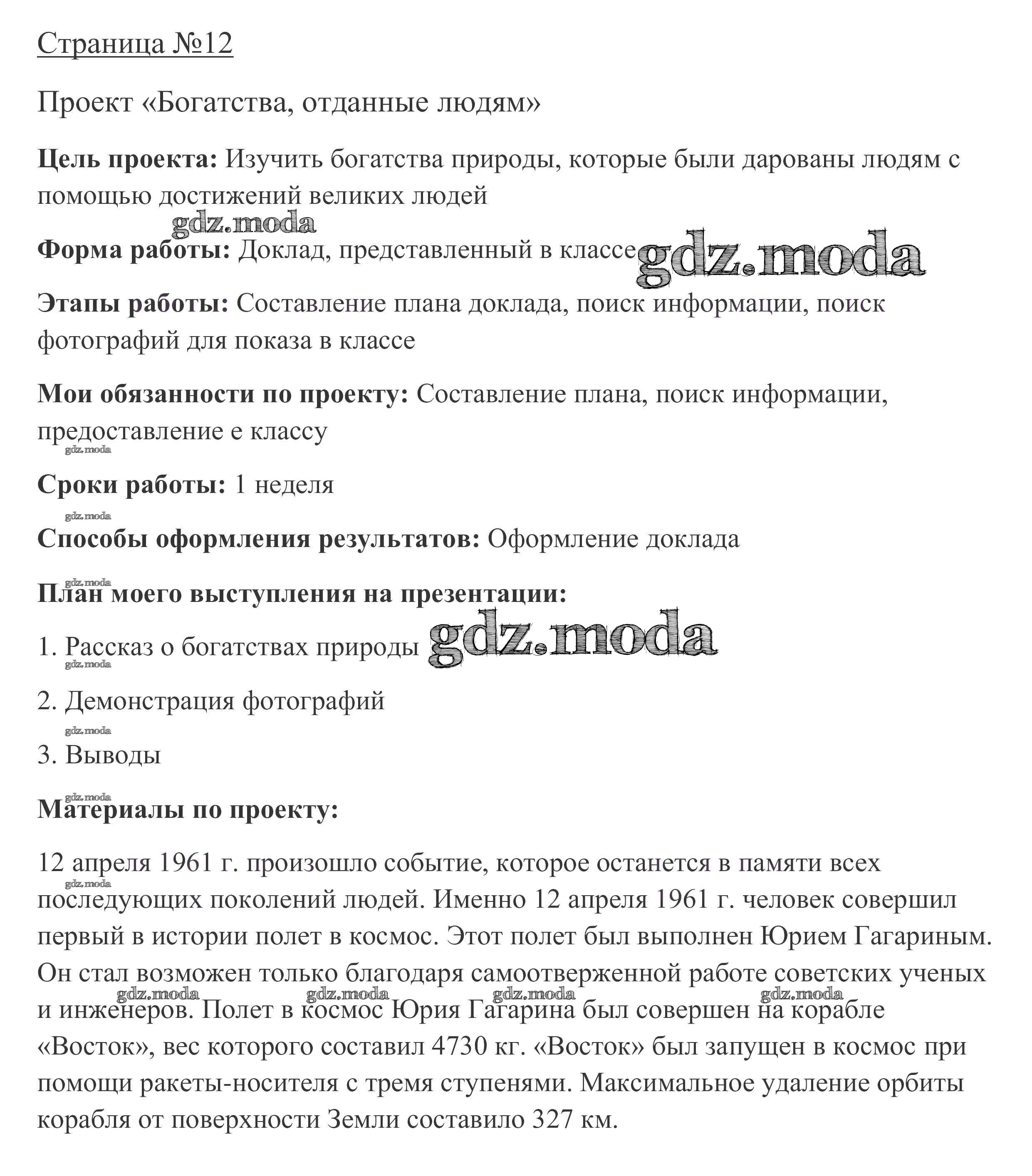 ГДЗ решение к заданию № 12 Окружающий мир 3 класс рабочая тетрадь Школа России Плешаков А.А. Просвещение 2017 Часть 1, Часть 2 ФГОС бесплатно на гдз.мода!