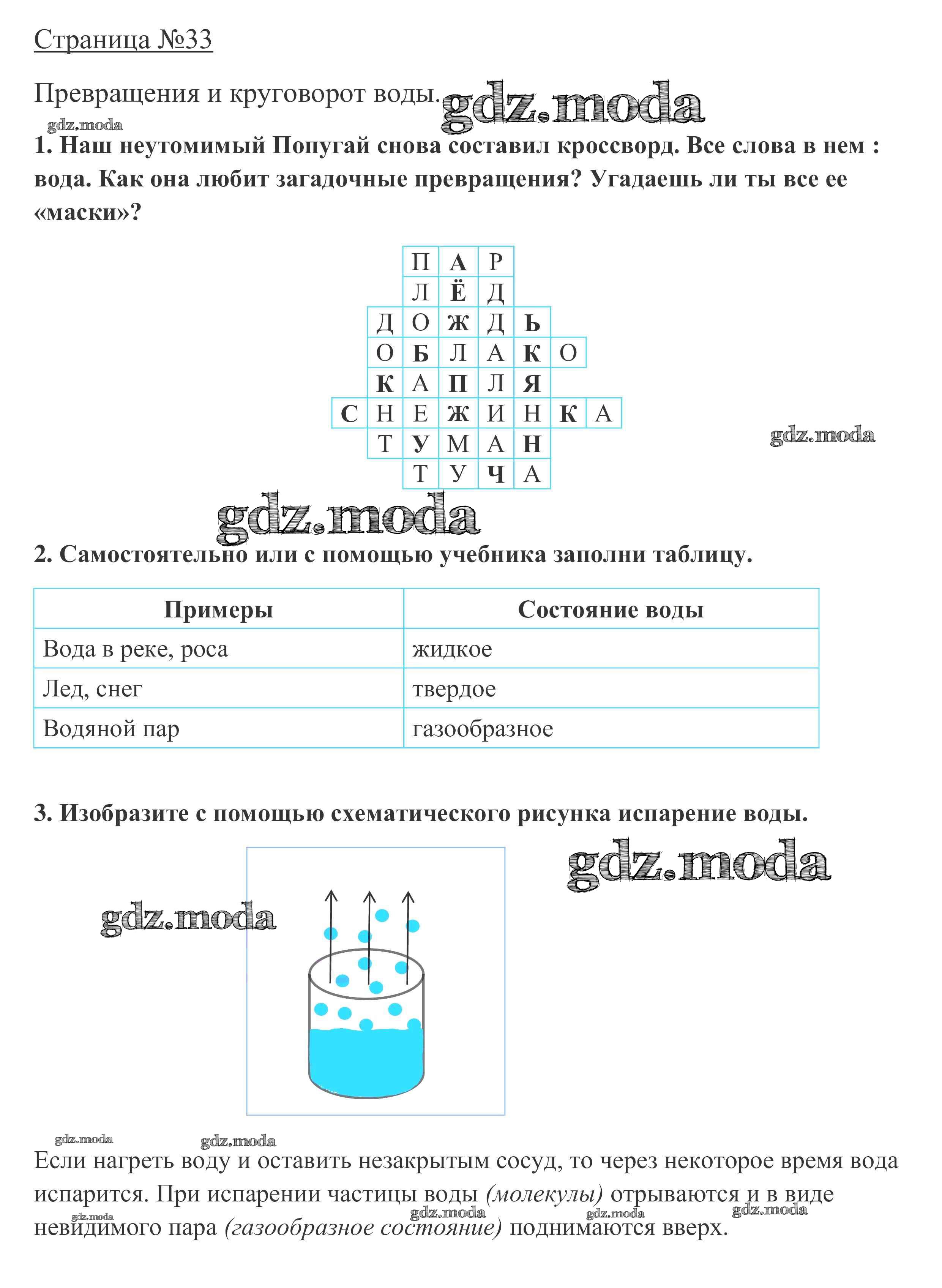 ОТВЕТ на задание № 33 Рабочая тетрадь по Окружающему миру 3 класс Плешаков Школа России