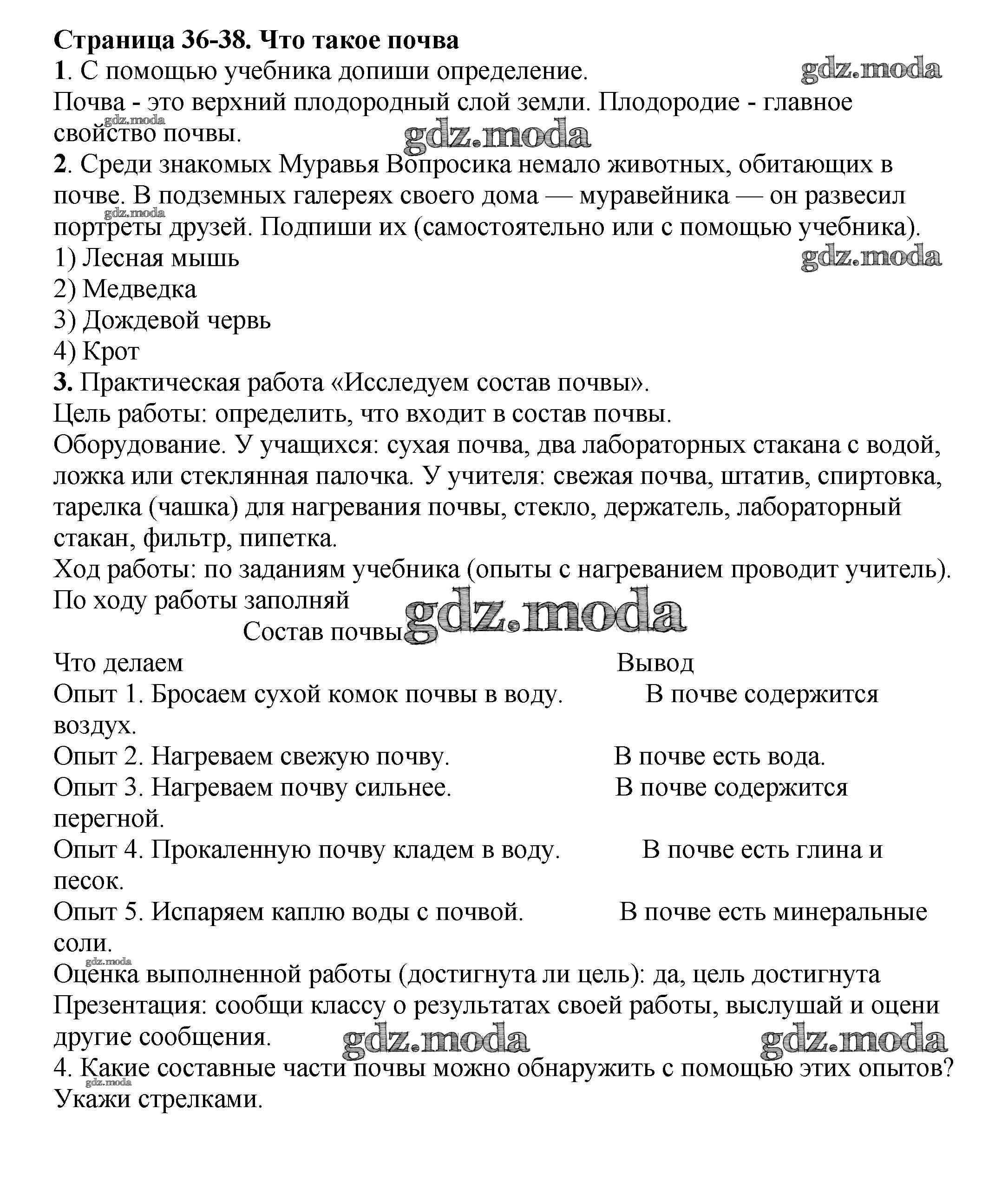 ОТВЕТ на задание № 36 Рабочая тетрадь по Окружающему миру 3 класс Плешаков Школа России