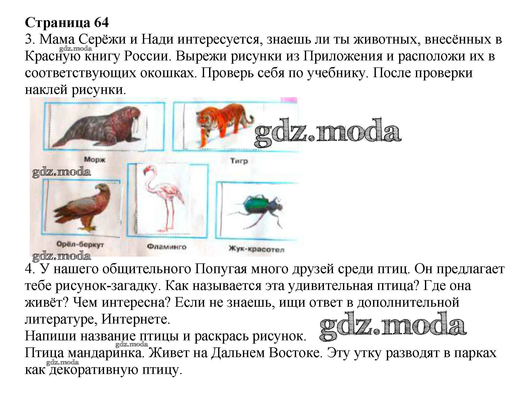 ОТВЕТ на задание № 64 Рабочая тетрадь по Окружающему миру 3 класс Плешаков Школа России