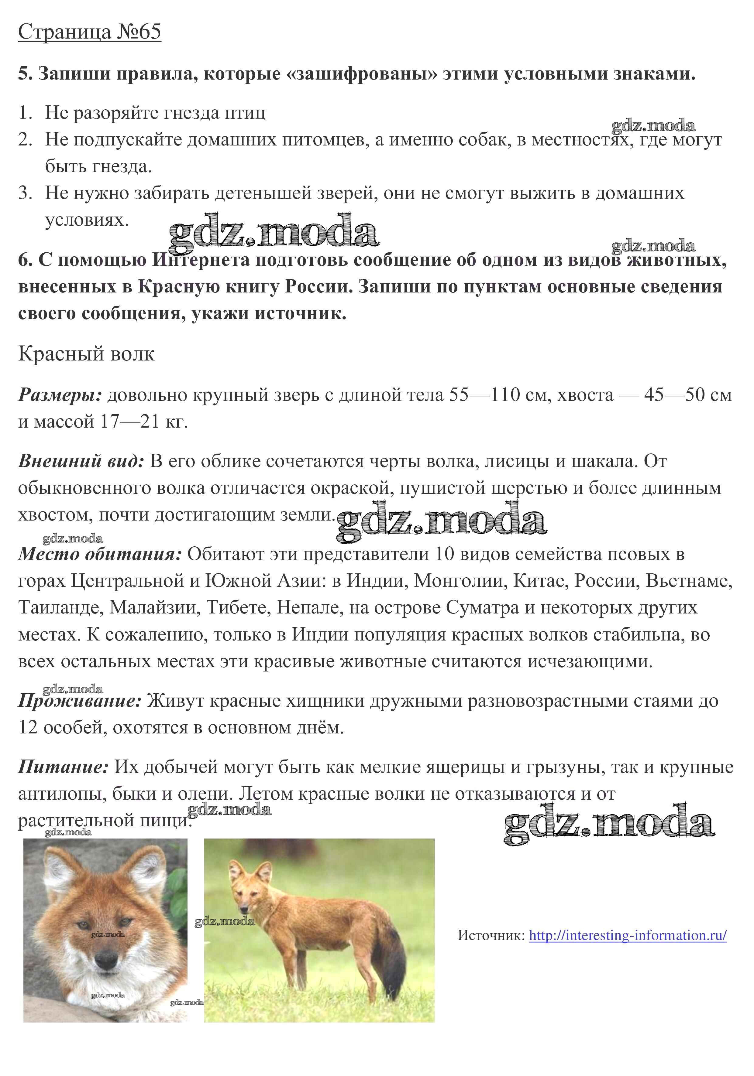 ОТВЕТ на задание № 65 Рабочая тетрадь по Окружающему миру 3 класс Плешаков Школа России