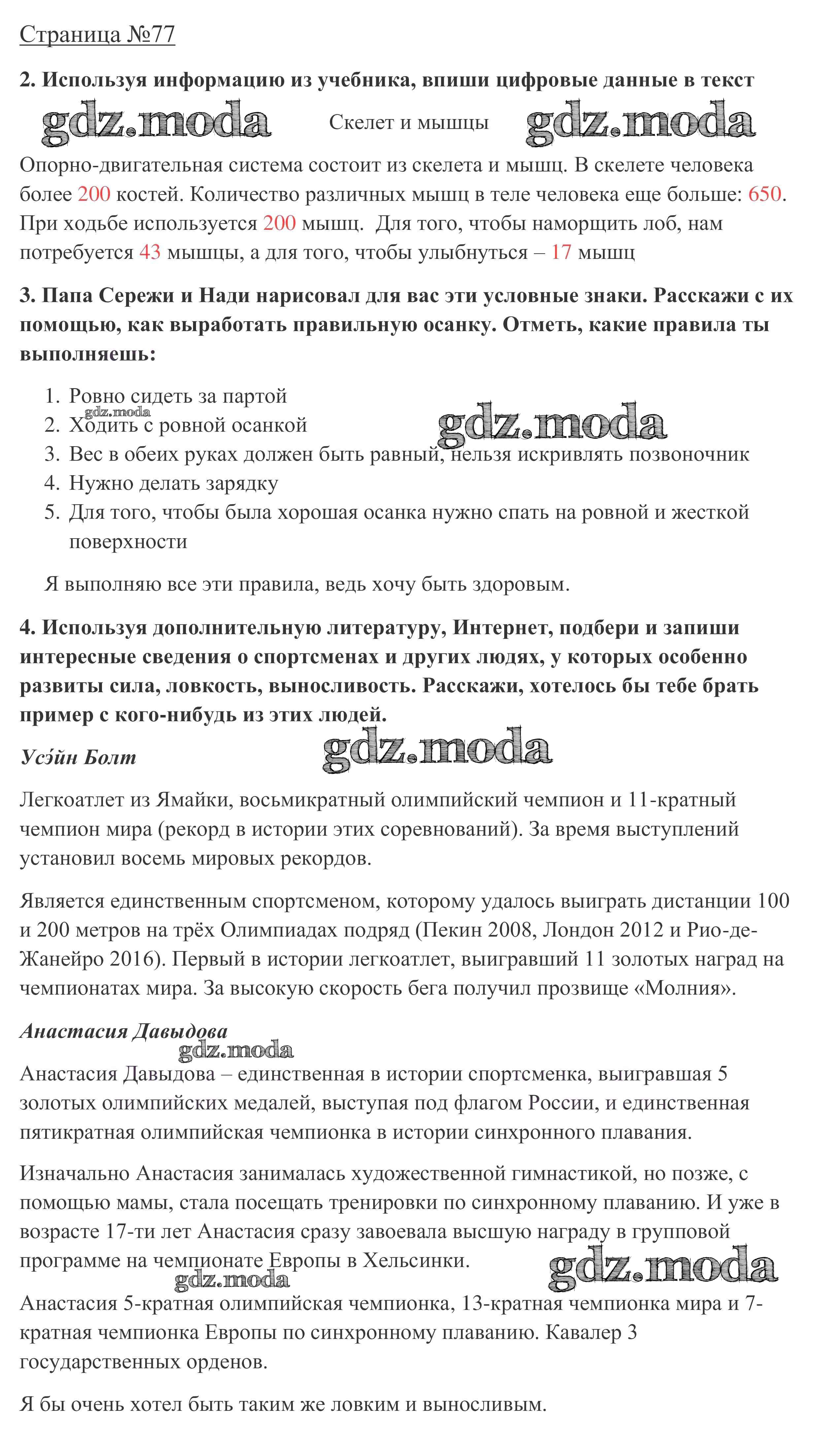 ОТВЕТ на задание № 77 Рабочая тетрадь по Окружающему миру 3 класс Плешаков Школа России