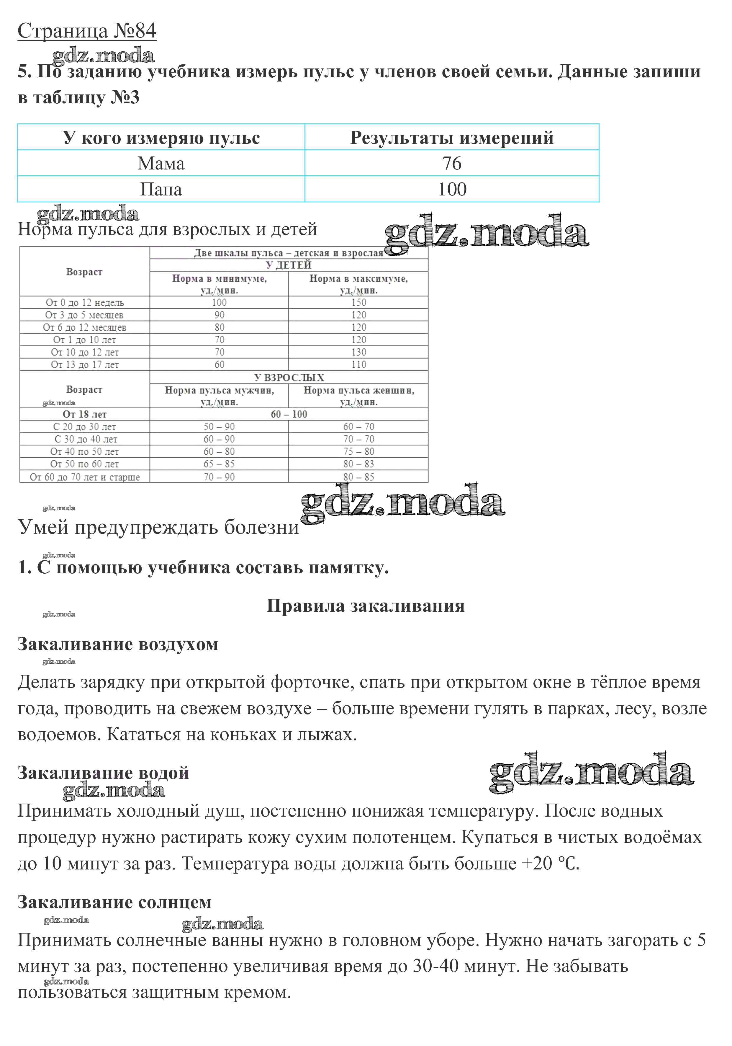 ОТВЕТ на задание № 84 Рабочая тетрадь по Окружающему миру 3 класс Плешаков Школа России