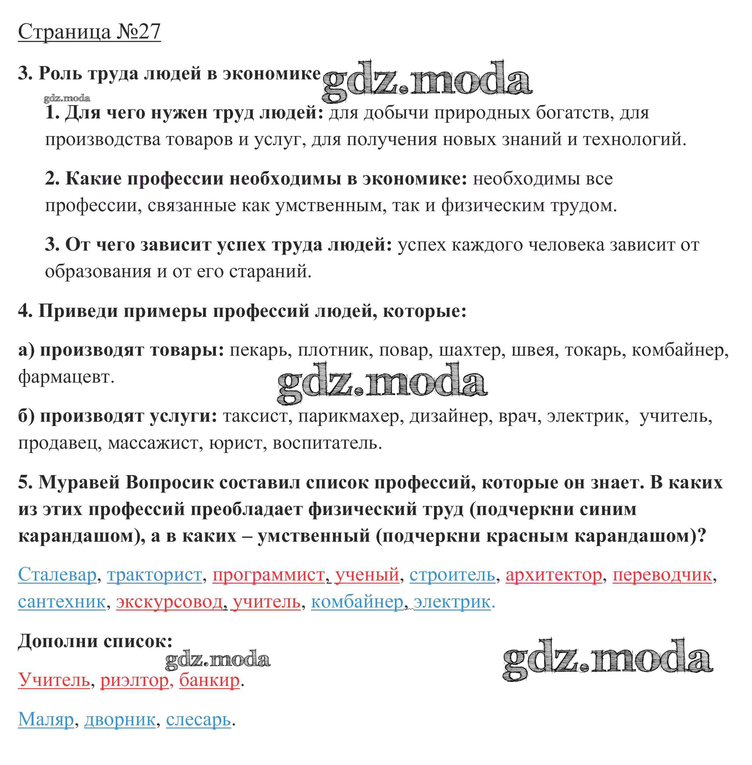 ОТВЕТ на задание № 27 Рабочая тетрадь по Окружающему миру 3 класс Плешаков Школа России