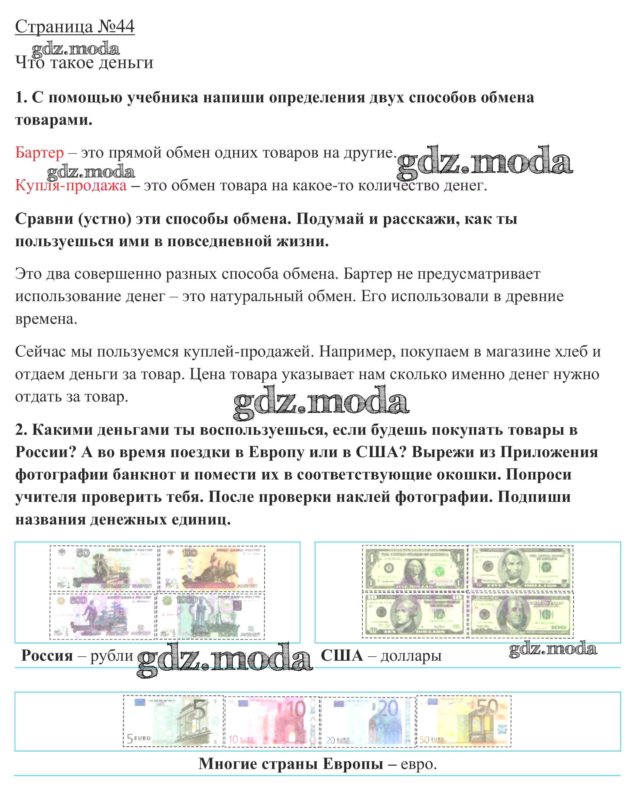 ОТВЕТ на задание № 44 Рабочая тетрадь по Окружающему миру 3 класс Плешаков Школа России