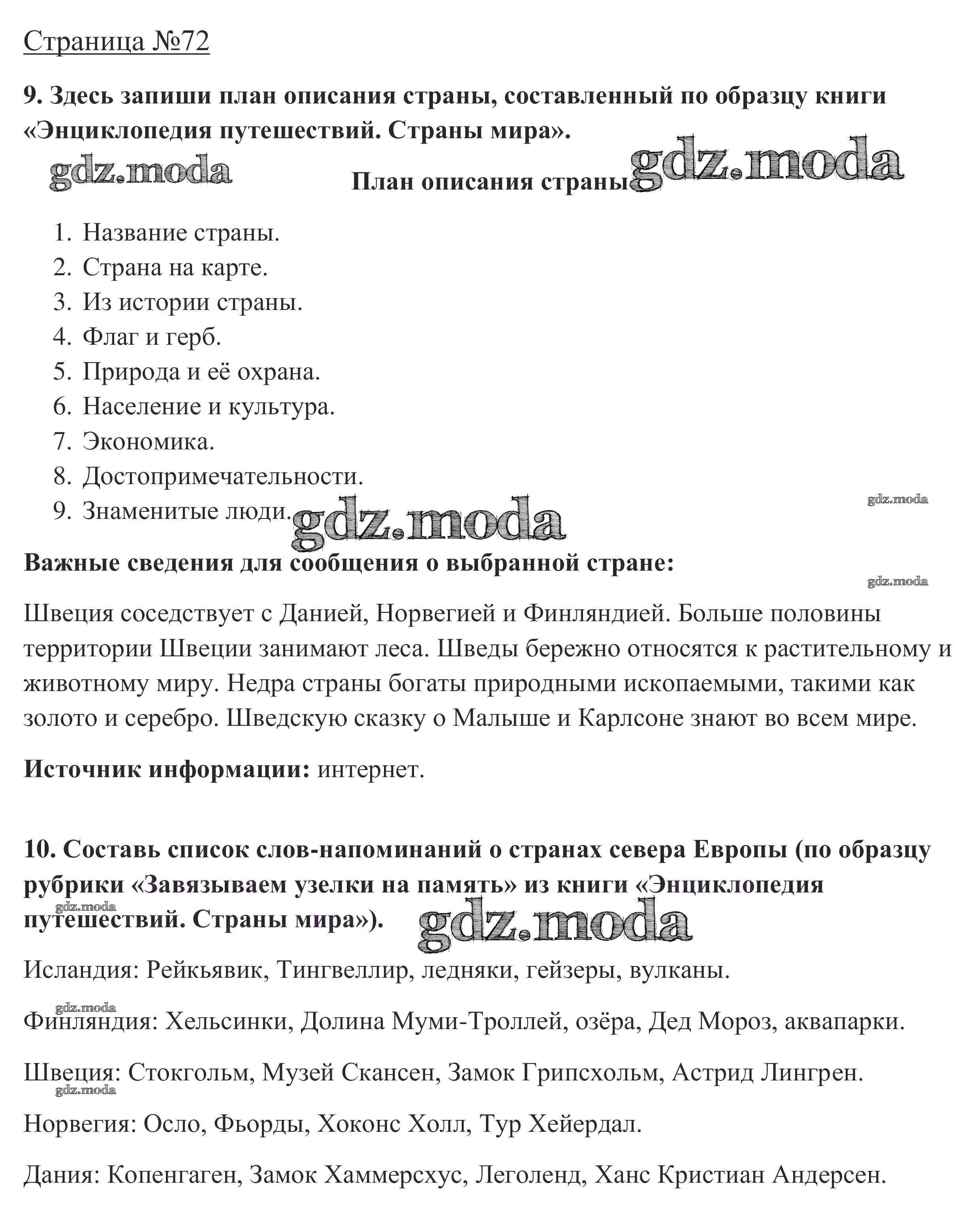 ОТВЕТ на задание № 72 Рабочая тетрадь по Окружающему миру 3 класс Плешаков Школа России