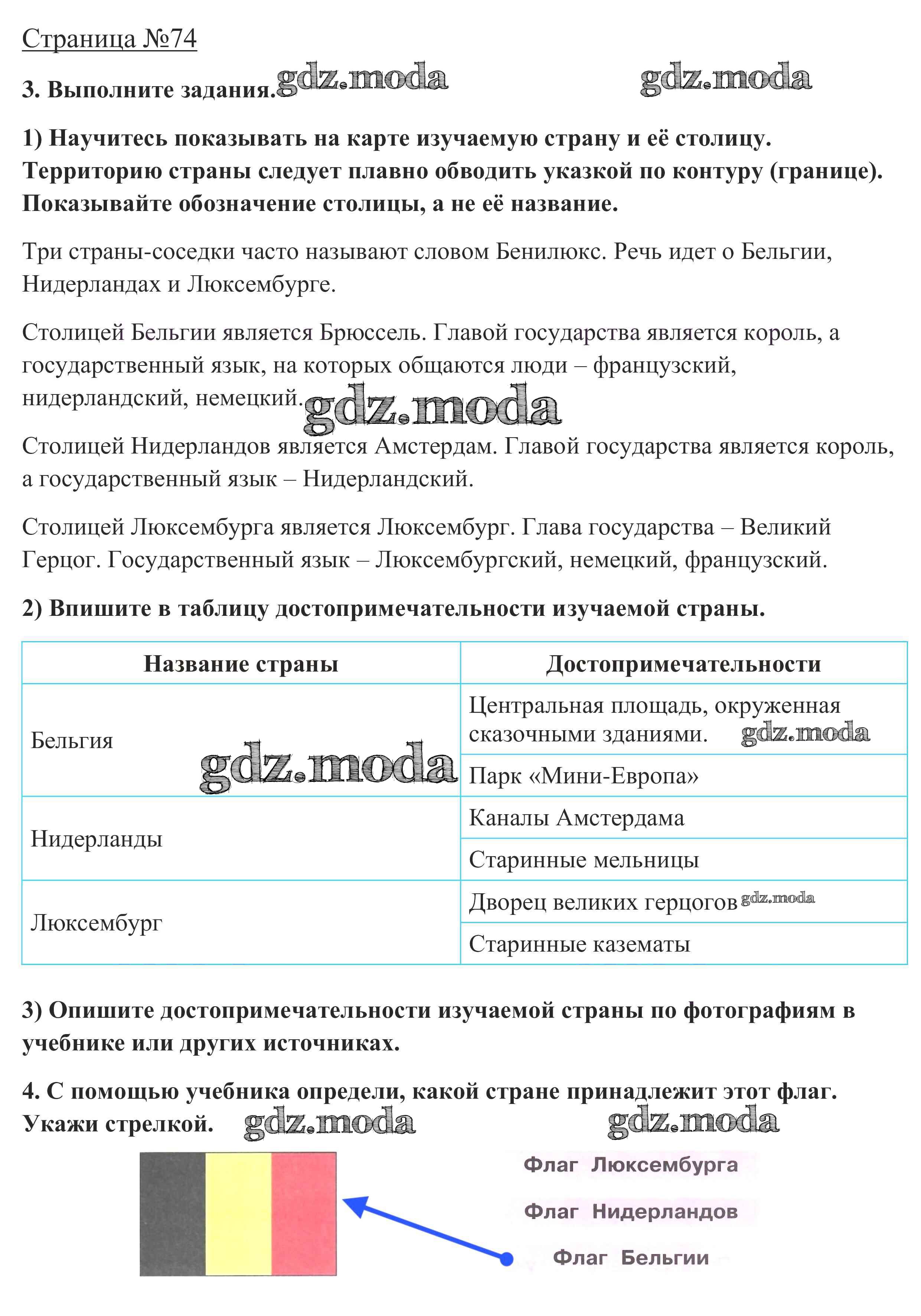 ОТВЕТ на задание № 74 Рабочая тетрадь по Окружающему миру 3 класс Плешаков Школа России