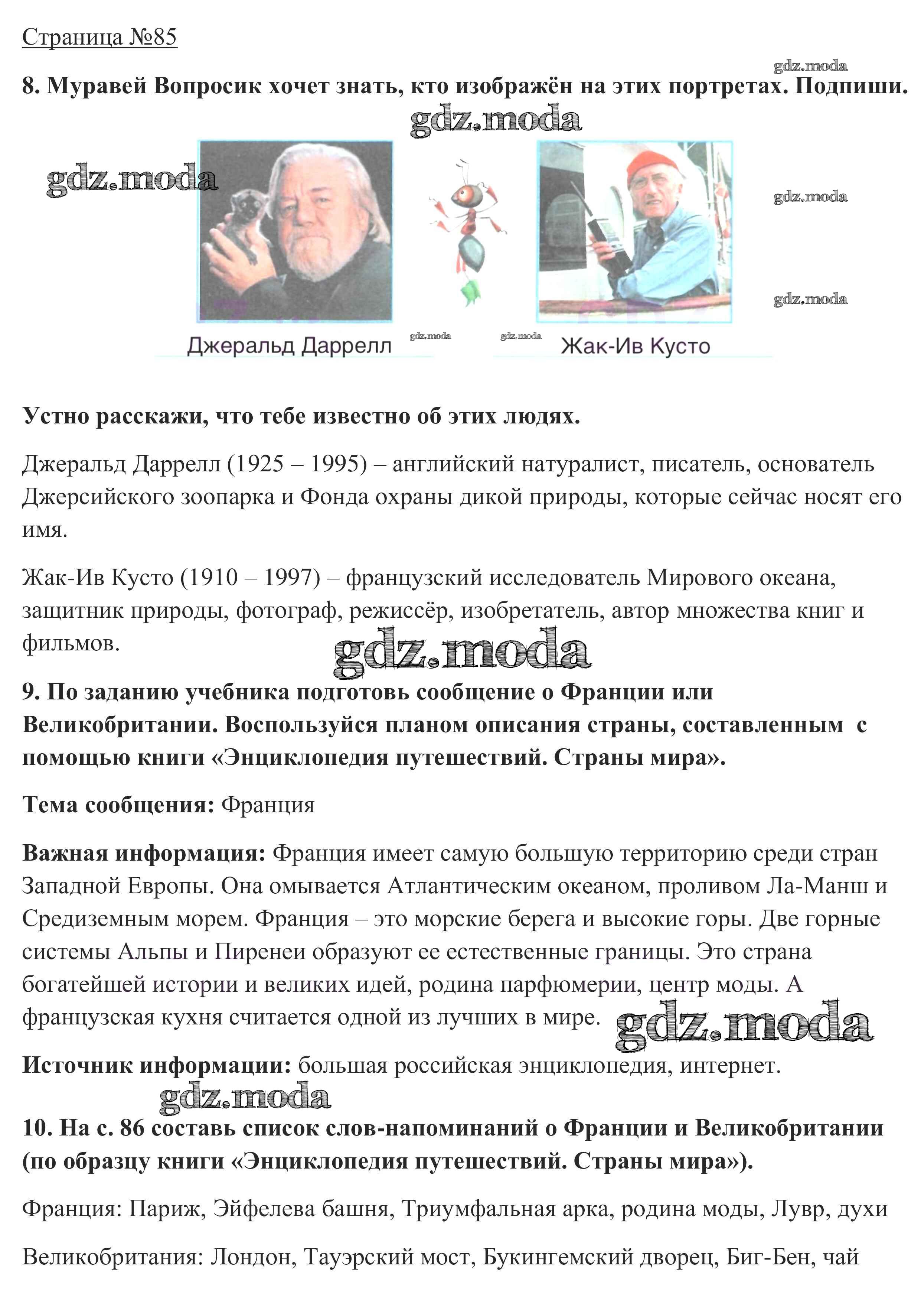 ОТВЕТ на задание № 85 Рабочая тетрадь по Окружающему миру 3 класс Плешаков Школа России