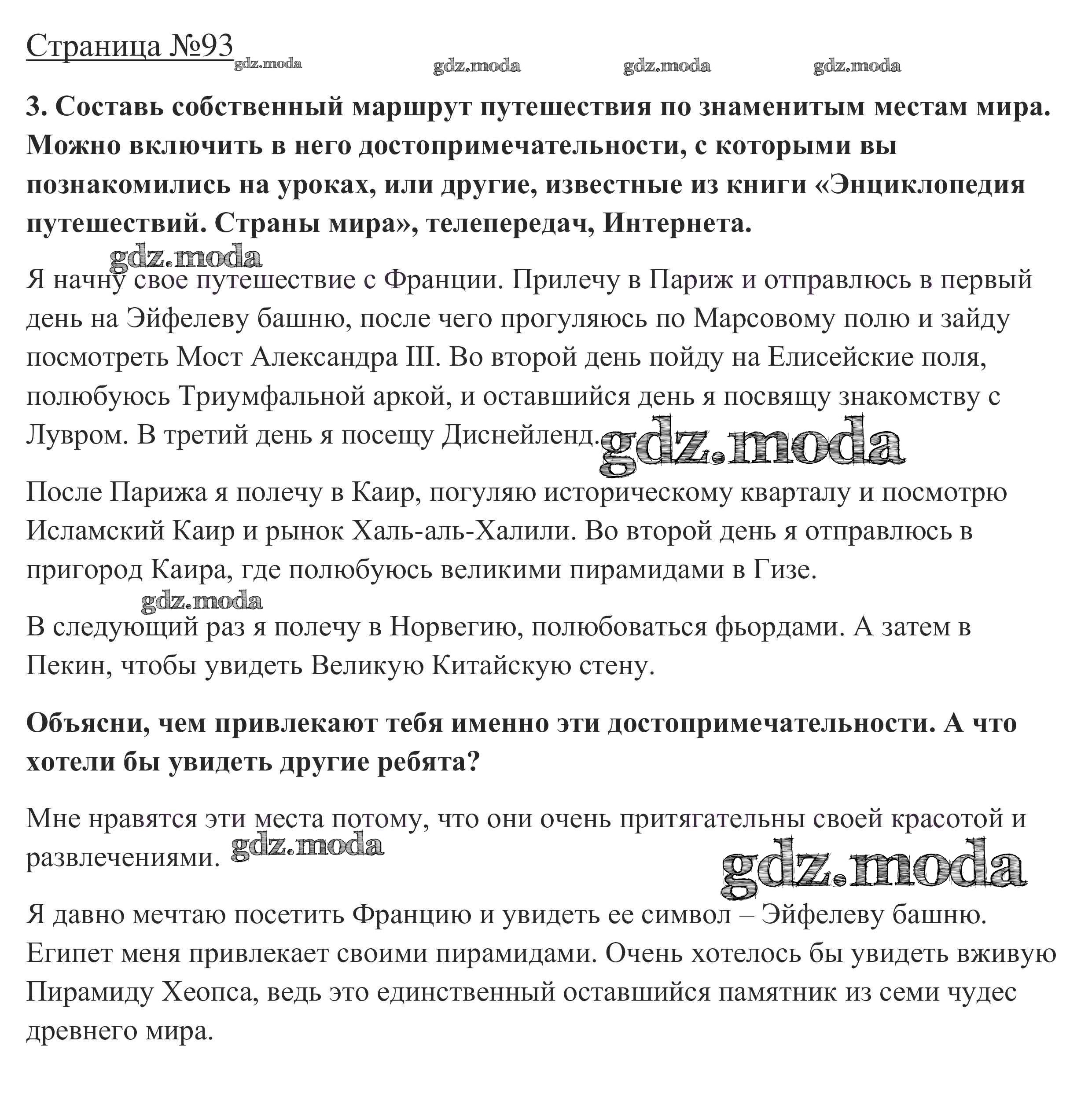 ГДЗ решение к заданию № 93 Окружающий мир 3 класс рабочая тетрадь Школа России Плешаков А.А. Просвещение 2017 Часть 1, Часть 2 ФГОС бесплатно на гдз.мода!