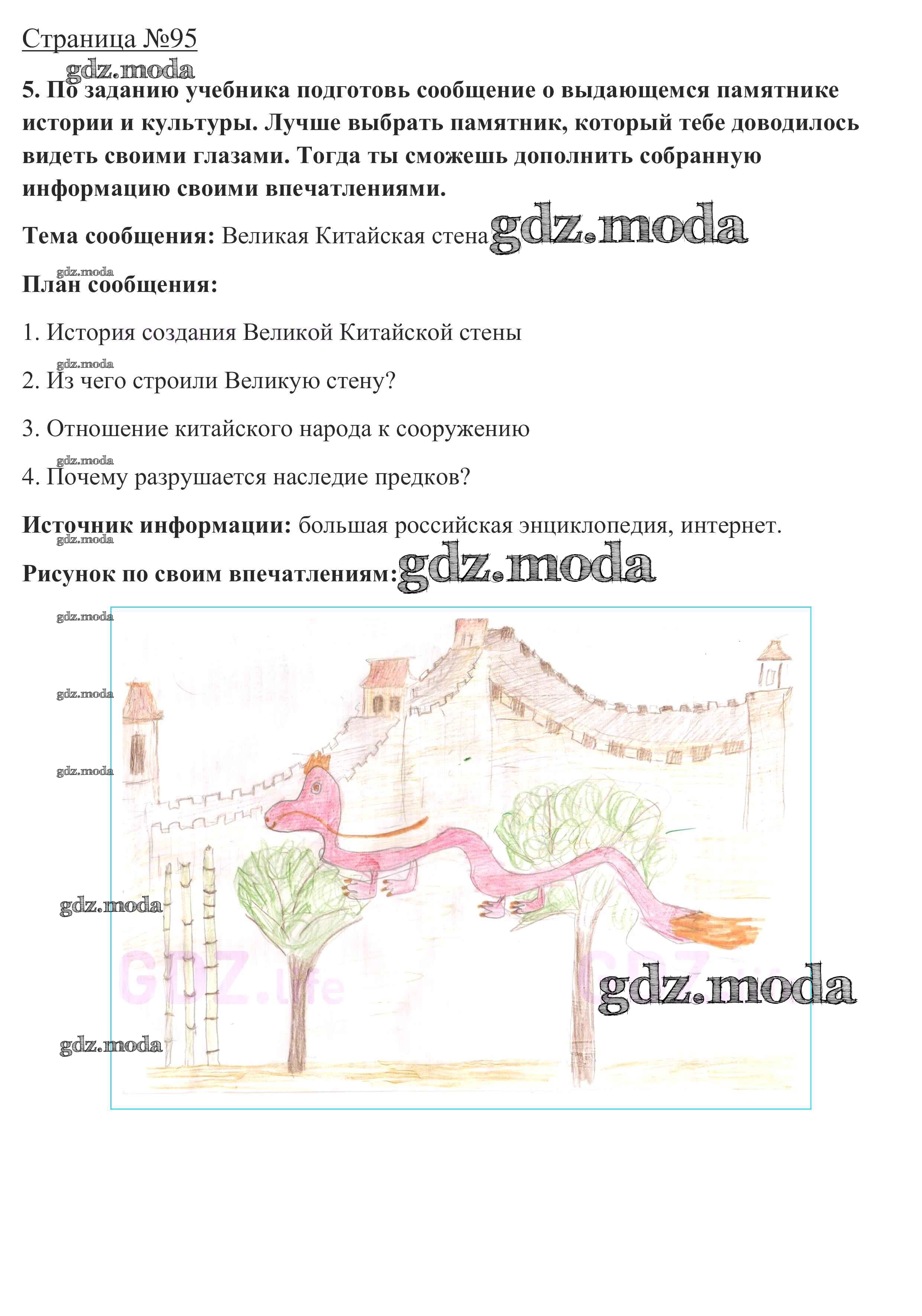 ГДЗ решение к заданию № 95 Окружающий мир 3 класс рабочая тетрадь Школа России Плешаков А.А. Просвещение 2017 Часть 1, Часть 2 ФГОС бесплатно на гдз.мода!
