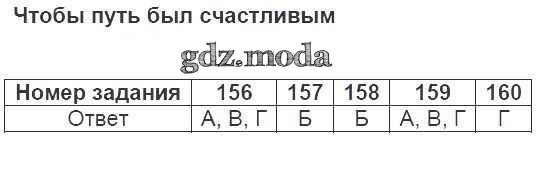 ГДЗ решение к заданию № 156-160 Окружающий мир 3 класс тесты Плешаков А.А. Просвещение 2017 ФГОС бесплатно на гдз.мода!