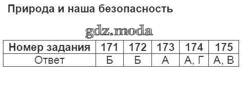 ГДЗ решение к заданию № 171-175 Окружающий мир 3 класс тесты Плешаков А.А. Просвещение 2017 ФГОС бесплатно на гдз.мода!