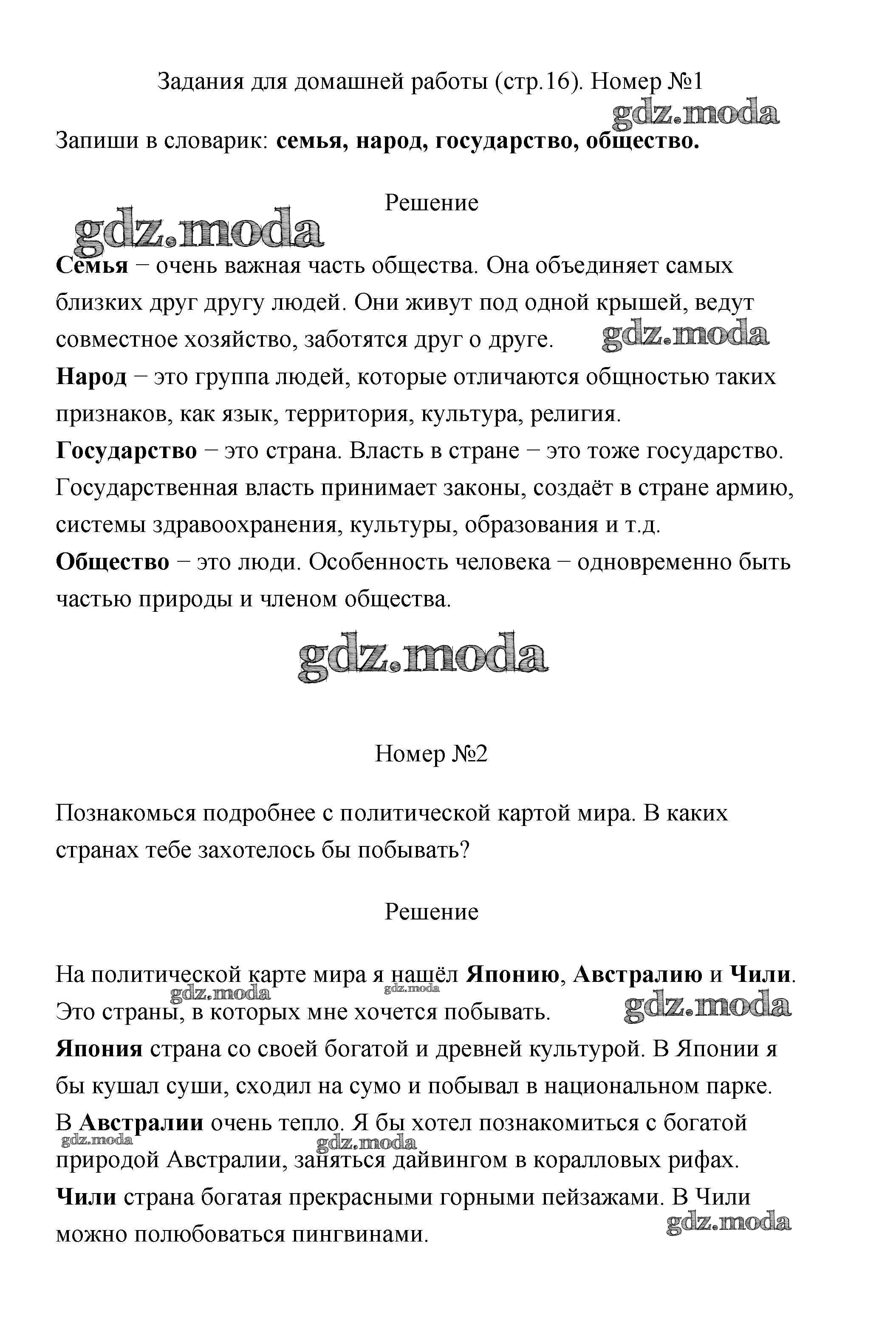 ГДЗ решение к заданию № 16 Окружающий мир 3 класс Плешаков (Школы России) Просвещение 2017 Часть 1, Часть 2 ФГОС бесплатно на гдз.мода!