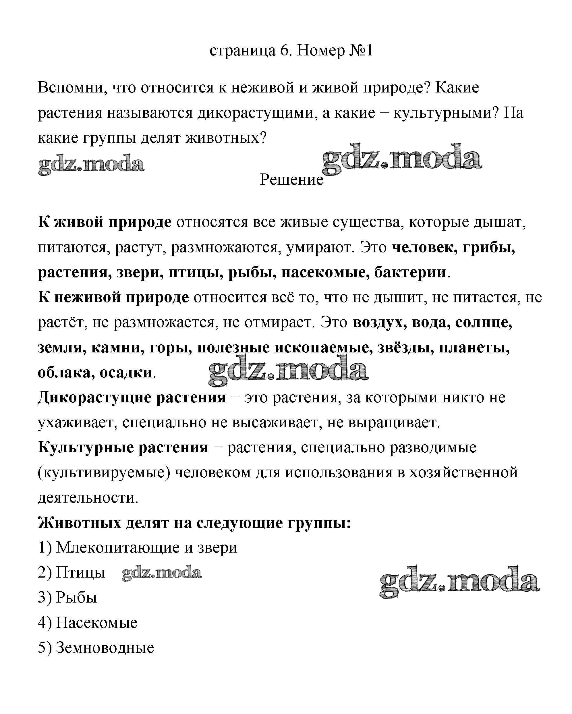 ГДЗ решение к заданию № 6 Окружающий мир 3 класс Плешаков (Школы России) Просвещение 2017 Часть 1, Часть 2 ФГОС бесплатно на гдз.мода!