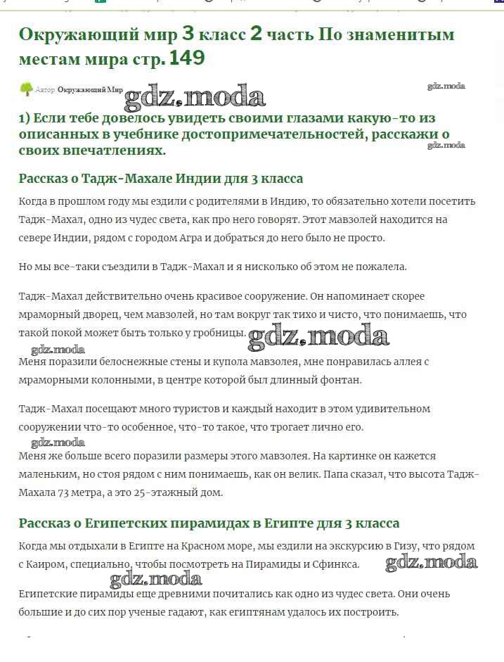ОТВЕТ на задание № 149 Учебник по Окружающему миру 3 класс Плешаков Школа России