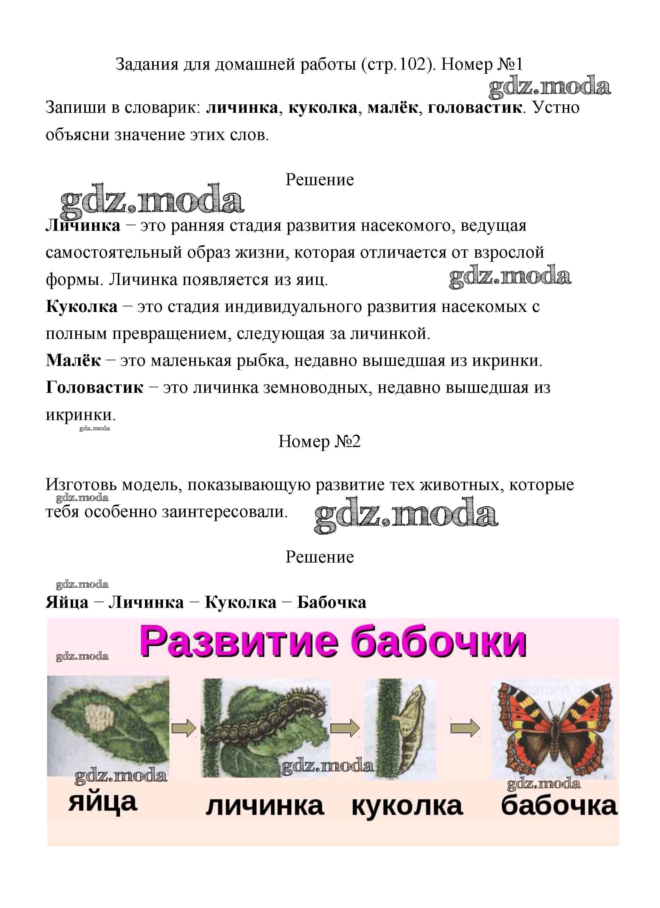 ГДЗ решение к заданию № 102 Окружающий мир 3 класс Плешаков (Школы России) Просвещение 2017 Часть 1, Часть 2 ФГОС бесплатно на гдз.мода!